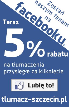 Za polubienie strony na Facebooku często czekają nas dodatkowe upusty i rabaty. Za kliknięcie na fanpage’u biura tłumacza przysiegłego w szczecinie otrzymamy 5% rabatu na tłumaczenia a niska cena i tania usługa procentują zwiększeniem ruchu i klientów. Jest to zysk dla obu stron: klient zyskuje niskim nakładem pracy upust, w tym wypadku tłumacz: staje się wiarygodnym podmiotem.